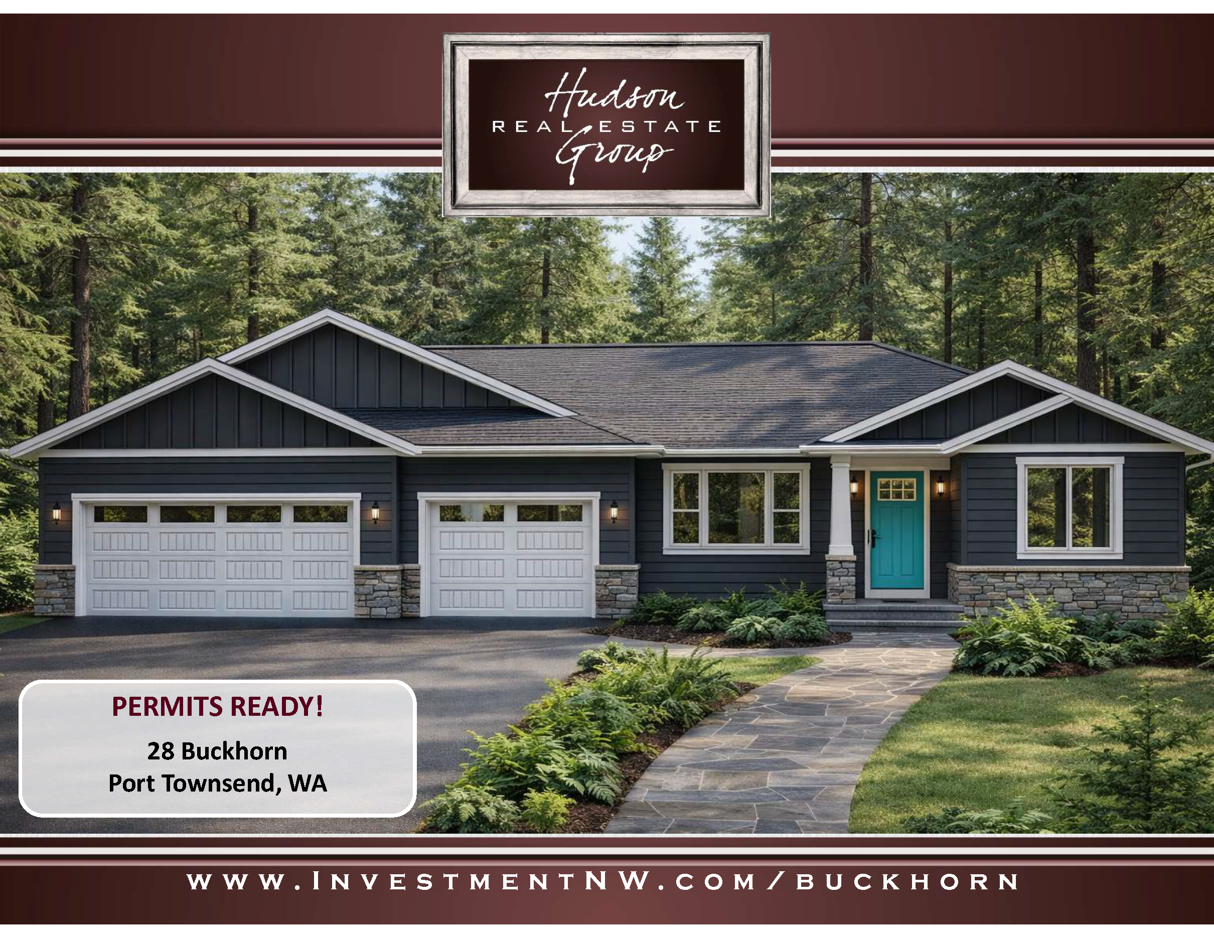 Beautiful story book setting. Large evergreens & perfect grade for a zero-step simply with meandering path to front door. With a landscaping plan, plenty of room for both a natural setting and ample or RV parking.